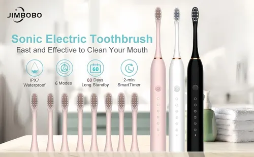 JIMBOBO Electric Toothbrush for Adults and Kids, Sonic Powerd Whitening Toothbrush with 8 Brush Heads, 6 Cleaning Modes, 2 Mins Smart Timer, 42000 VPM, USB Rechargeable, One Charge for 60 Days (Black)
