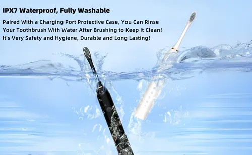 🦷【Convenient Charging】Designed with convenience in mind, this toothbrush is USB rechargeable, eliminating the need for constantly buying batteries. Its fast charge technology allows you to quickly power up your toothbrush, ensuring it's always ready to use. The IPX7 waterproof rating means you can confidently use this toothbrush in the shower or bath without worrying about water damage.