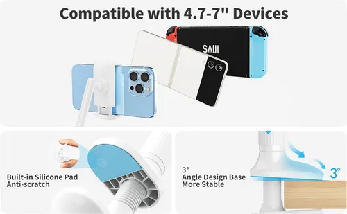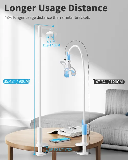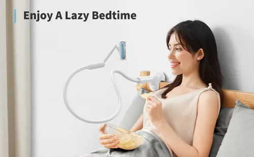 【UPGRADED VERSION】:The arm of our gooseneck bed holder adopts better materials and design. It has improvements in both stability and durability. high- quality Aluminum-magnesium alloy solid core makes the lazy arm sturdy enough to hold his phone firmly, yet flexible to bend in any direction to accommodate your view.