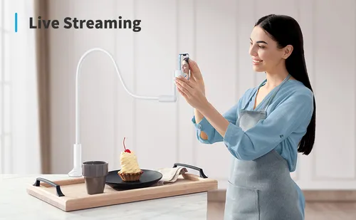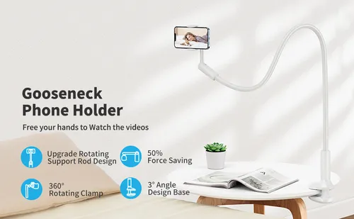 【FREE YOUR HANDS】:This ergonomic phone holder is so flexible that you can enjoy video freedom lying on bed or sofa, meet with family on desktop clips, read recipes in kitchen, have meetings in office, live streaming as a live broadcast stand/mount, recording video as overhead phone mount.