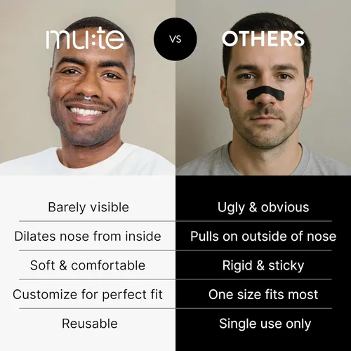 SNORE LESS, SLEEP BETTER – Mute Nasal Dilators are safe and effective at reducing snoring by increasing nasal airflow in 75% of users. They improve sleep quality for you and your partner