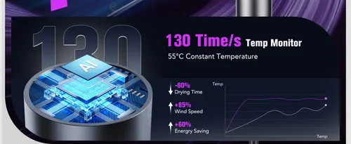 【Dual NTC Intelligent Temperature Control & 12 Customizable Settings】The dual NTC intelligent temperature control system monitors the temperature 130 times per second, ensuring consistent airflow and preventing scalp damage from overheating. With 4 heat settings and 3 speed levels, it offers 13 tailored drying modes. The simulated natural airflow maintains hair integrity for perfectly voluminous results every time.