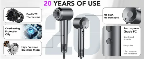 【Hyper-Speed Motor, Lightning Drying】The high speed hair dryer is equipped with an advanced brushless motor, delivering a powerful airflow at 160,000 rpm to quickly dry hair surfaces, preventing heat damage from excessive temperatures. It ensures gentle drying while being 7x faster than traditional hair dryers! Whether you're in a hurry or just need a quick touch-up, it delivers salon-quality results instantly.