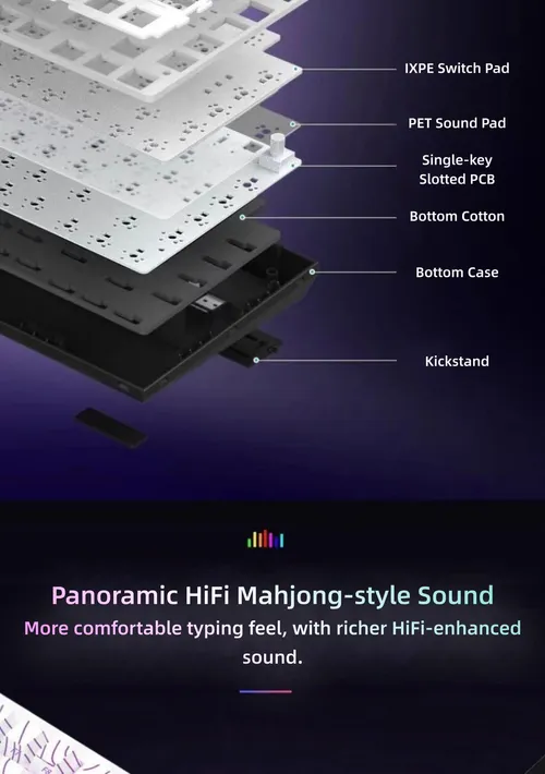 - Advanced Structure and PCB Single Key Slotting: This thocky heavy mechanical keyboard features a advanced structure, extended integrated silicone pad, and PCB single key slotting, better optimizes resilience and stability, making the hand feel softer and more elastic. Five layers of filling silencer fills the gap between the PCB, the positioning plate and the shaft,effectively counteracting the cavity noise sound of the shaft hitting the positioning plate, and providing a solid feel