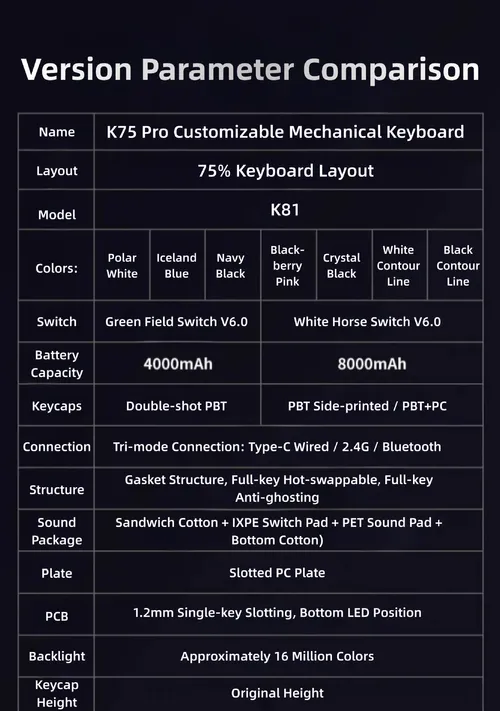 - Professional Gaming Keyboard: No matter the outlook, the construction, or the function, F75 Pro mechanical keyboard is definitely a professional gaming keyboard. This 81-key 75% layout compact keyboard can save more desktop space while retaining the necessary arrow keys for gaming. Additionally, with the multi-function knob, you can easily control the backlight and Media. Keys macro programmable, you can customize the function of single key or key combination function through F75 driver to increase the probability of winning the game and improve the work efficiency. N key rollover, and supports WIN key lock to prevent accidental touches in intense games