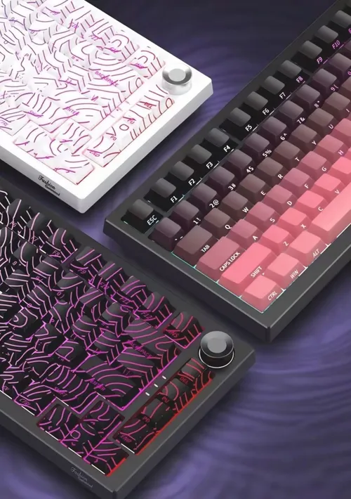 - Side-Prined PBT Keycaps: Side-prined keycap keyboard are currently a new trend worldwide. These side-engraved PBT keycaps take double injection molding and heat sublimation process, which are more durable without fading, sweat-proof, and softer to the touch, allow the keyboard's light to shine through fonts. Compared with traditional keyboard, this side-prined keyboard can bring you a very different keyboard using experience. For the color of the keycaps, we choose gradient pink black color to make the whole keyboard looks cool and stylish