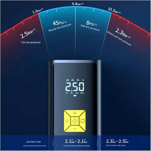 Portable car tire inflator: Quickly compresses air and provides a stable air source. It can meet various work requirements and improve efficiency.